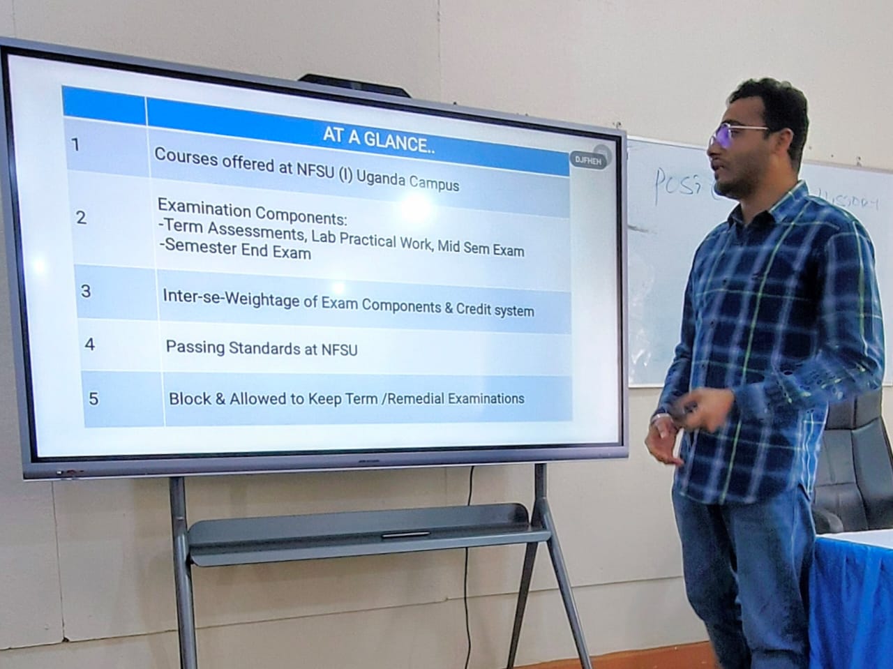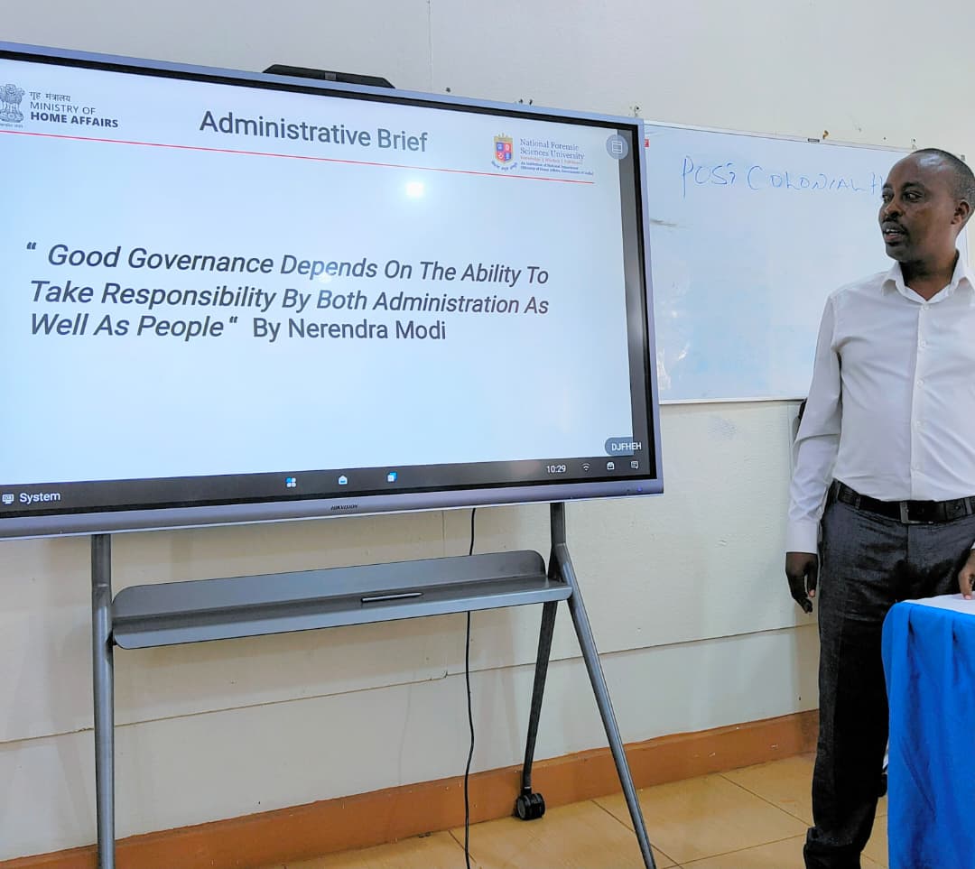 NFSU Campus at Jinja, Uganda launched academic session with courses in Forensic Science, Homeland Security, Cyber Security and Digital Forensics on 02 Oct 2025. During the Orientation Program, Mr. Andrew Mubiru, Director of Uganda Police Forensic Dept, delivered Keynote Address.