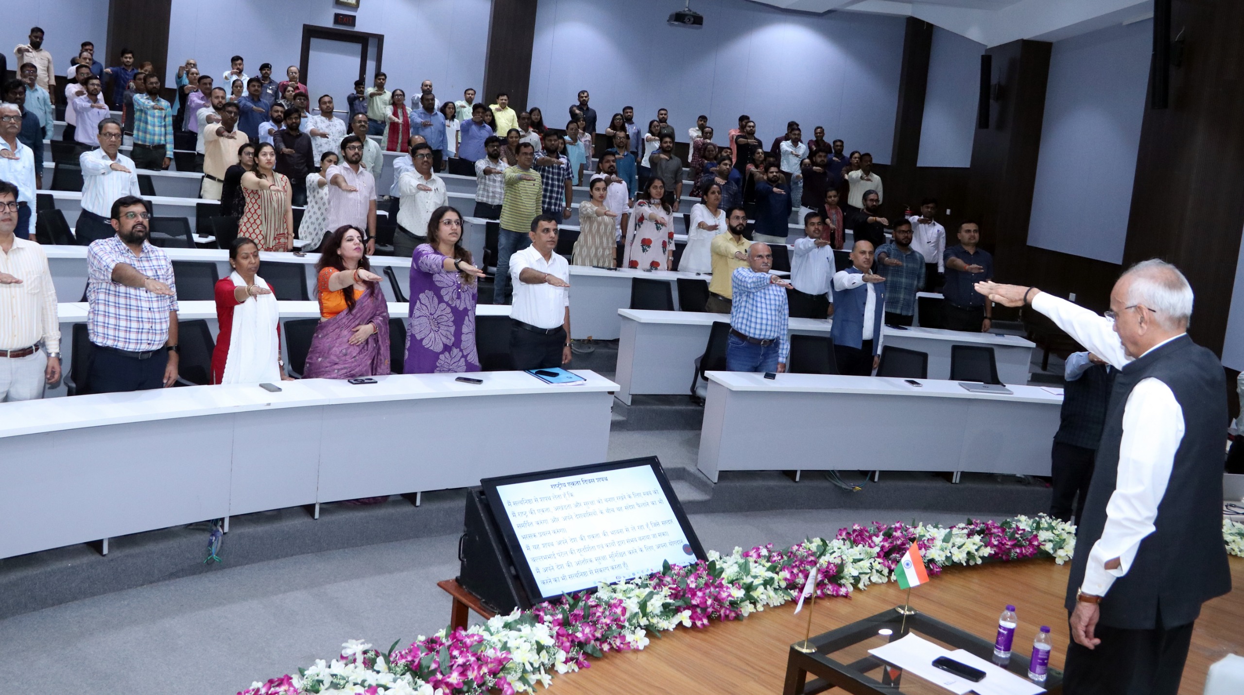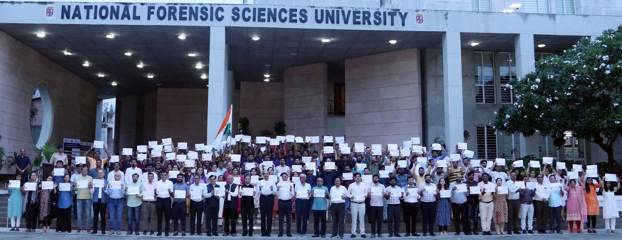 In a heartfelt homage to Bharat Ratna Sardar Vallabhbhai Patel, a commemorative event titled “Sardar @ 150 – One Nation. One Vision” was held on 31st October, 2025. The event was presided over by Padma Shri Awardee, Dr. J. M. Vyas, Vice Chancellor of NFSU and featured a series of engaging activities designed to reflect Sardar Patel’s enduring legacy and inspire collective commitment to his vision of a united and resilient India. Key highlights of the programme included a documentary screening on Sardar Vallabhbhai Patel’s life and contributions, alongside the inauguration of a book exhibition celebrating his legacy. The event also featured a Unity March to reaffirm national solidarity. Adding a powerful visual dimension, the Wall of Unity showcased Patel’s milestones and quotes. Faculty members and staff also took the "Rashtriya Ekta Diwas" Pledge in Rajbhasha-Hindi, reaffirming their dedication to upholding the ideals of national integrity, unity in diversity, and unwavering commitment to the vision of a strong, united India envisioned by Sardar Vallabhbhai Patel.